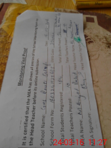 | Attendance Register | Head Teacher | MEA with School | Visit Proof |