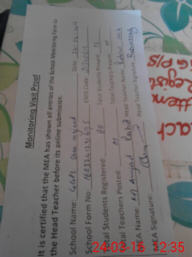 | Certified that this School was Inspected by the Undersigned MEA/DMO Today and the Information Stated Above is as Per Record. | |||||