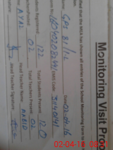 | EMIS Code: 31140141 | Name of School: GPS CHAK NO 81/1-L | |||