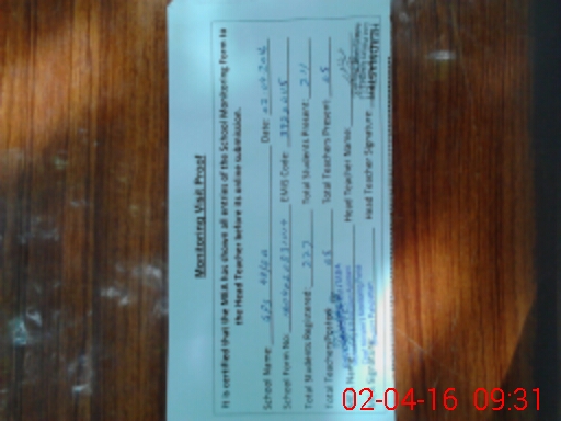| Attendance Register | Head Teacher | MEA with School | Visit Proof |