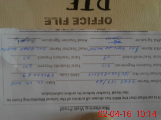| Certified that this School was Inspected by the Undersigned MEA/DMO Today and the Information Stated Above is as Per Record. | |||||
