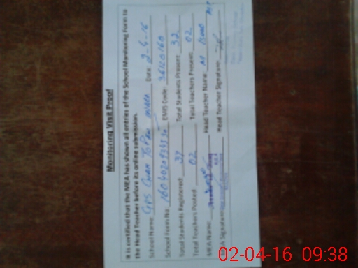 | Attendance Register | Head Teacher | MEA with School | Visit Proof |