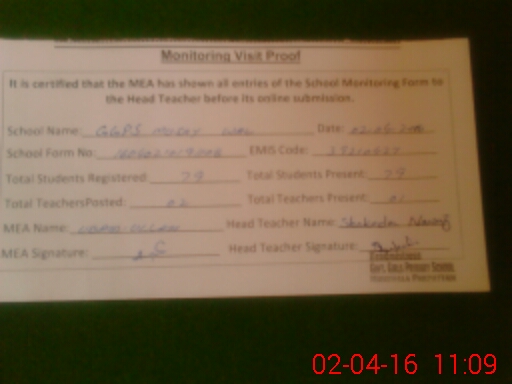 | Attendance Register | Head Teacher | MEA with School | Visit Proof |