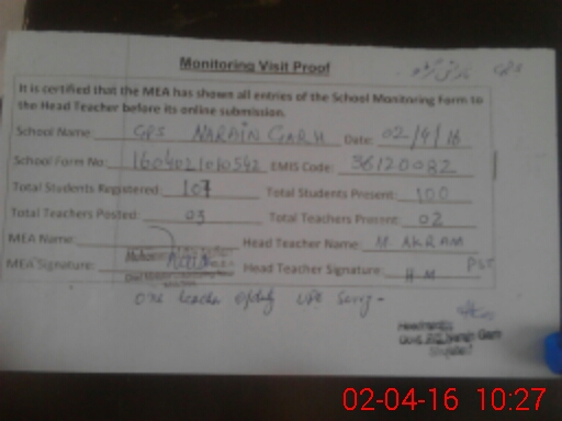 | EMIS Code: 36120082 | Name of School: GPS NARAIN GARH P/O GARDEZPUR SHUJABAD | |||