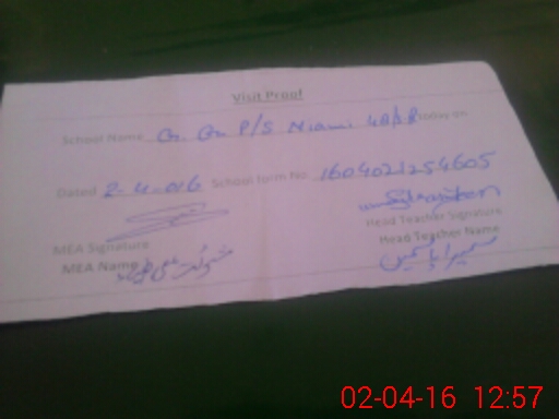 | Attendance Register | Head Teacher | MEA with School | Visit Proof |