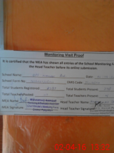 | Certified that this School was Inspected by the Undersigned MEA/DMO Today and the Information Stated Above is as Per Record. | |||||