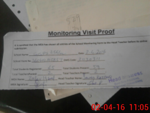| Attendance Register | Head Teacher | MEA with School | Visit Proof |