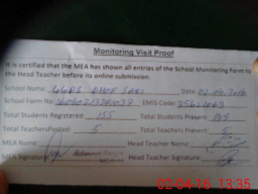 | Attendance Register | Head Teacher | MEA with School | Visit Proof |