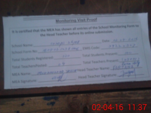 | Certified that this School was Inspected by the Undersigned MEA/DMO Today and the Information Stated Above is as Per Record. | |||||