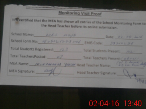 | Certified that this School was Inspected by the Undersigned MEA/DMO Today and the Information Stated Above is as Per Record. | |||||