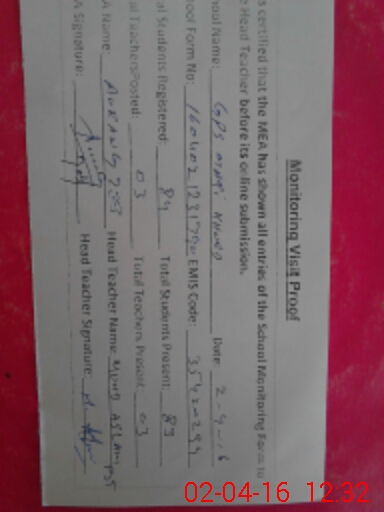 | Certified that this School was Inspected by the Undersigned MEA/DMO Today and the Information Stated Above is as Per Record. | |||||