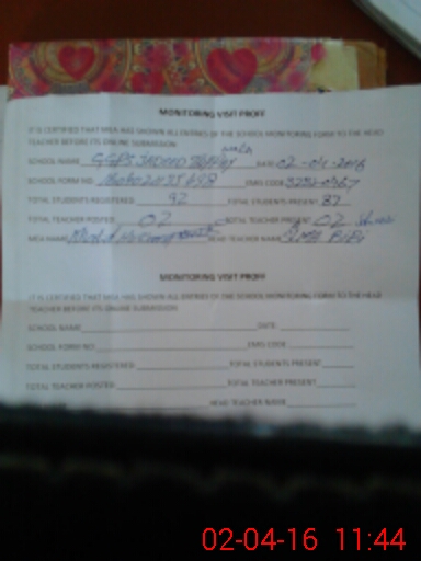 | Attendance Register | Head Teacher | MEA with School | Visit Proof |
