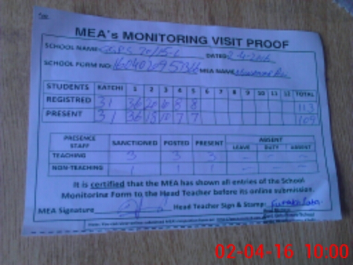| Attendance Register | Head Teacher | MEA with School | Visit Proof |