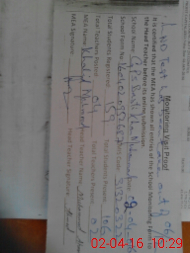 | Name: SY**** MU**** NA**** HU**** NA**** Designation: (School Headmaster's/Headmistress's) PST Phone/Cell Number: 03**** |
