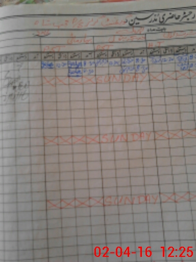 | CNIC | Full Name | Designation | R/C | Absence During Last Calender Month |