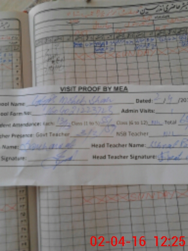 | Attendance Register | Head Teacher | MEA with School | Visit Proof |