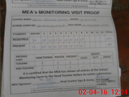 | Attendance Register | Head Teacher | MEA with School | Visit Proof |