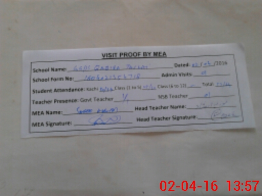 | Attendance Register | Head Teacher | MEA with School | Visit Proof |