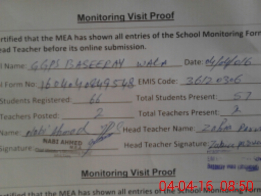 | Certified that this School was Inspected by the Undersigned MEA/DMO Today and the Information Stated Above is as Per Record. | |||||