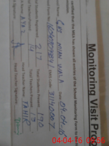 | EMIS Code: 31140007 | Name of School: GHS MIAN WALA BANGLA | |||