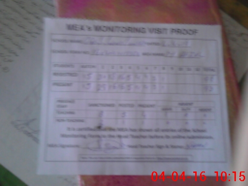 | Monitoring Date: 04-04-2016 | Start Time: 04-04-2016 08:45 AM | End Time: 04-04-2016 10:16 AM | Name of MEA: M.Af**** (R**** | |