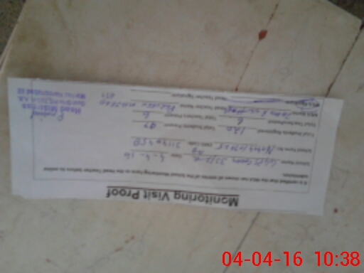 | Monitoring Date: 04-04-2016 | Start Time: 04-04-2016 10:07 AM | End Time: 04-04-2016 10:39 AM | Name of MEA: Za**** BN**** | |