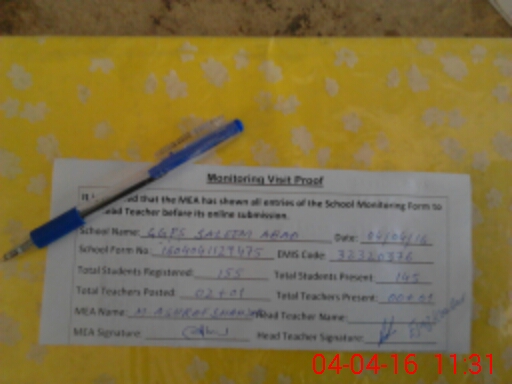 | Attendance Register | Head Teacher | MEA with School | Visit Proof |