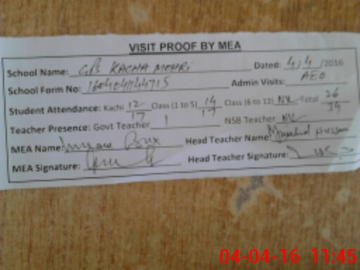 | EMIS Code: 32430079 | Name of School: GPS KACHA MOHRI | |||