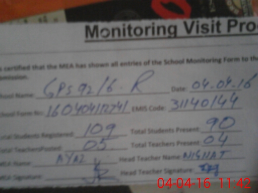 | Attendance Register | Head Teacher | MEA with School | Visit Proof |