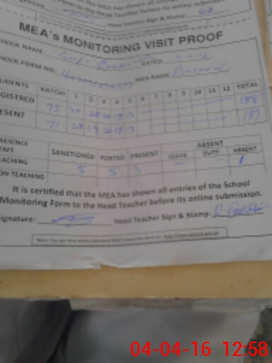 | Attendance Register | Head Teacher | MEA with School | Visit Proof |