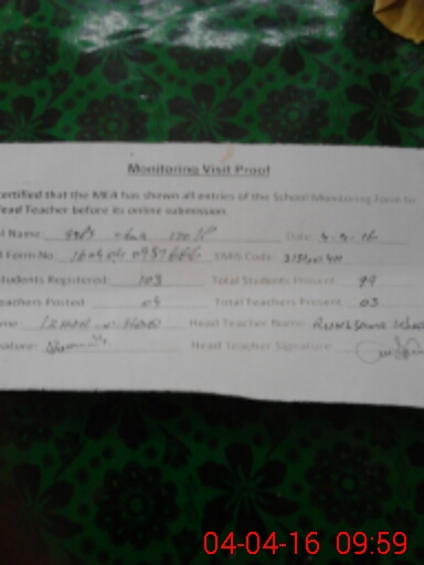 | Attendance Register | Head Teacher | MEA with School | Visit Proof |