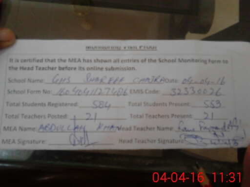 | EMIS Code: 32330026 | Name of School: GHS SHARIF CHAJRA | |||
