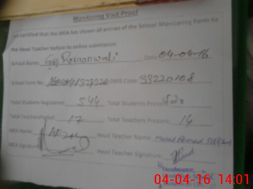 | Attendance Register | Head Teacher | MEA with School | Visit Proof |