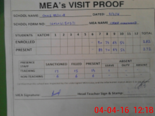 | Certified that this School was Inspected by the Undersigned MEA/DMO Today and the Information Stated Above is as Per Record. | |||||