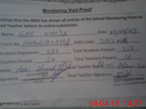 | EMIS Code: 36120018 | Name of School: GHS KHOJA P.O. KHOJA TEH. SHUJABAD DISTRICT MULTAN | |||