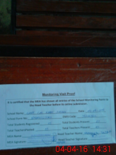 | Attendance Register | Head Teacher | MEA with School | Visit Proof |
