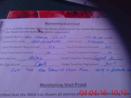 | Certified that this School was Inspected by the Undersigned MEA/DMO Today and the Information Stated Above is as Per Record. | |||||