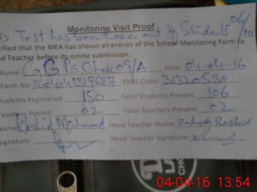 | Name: AS**** TA**** Designation: (School Headmaster's/Headmistress's) PST Phone/Cell Number: 03**** |
