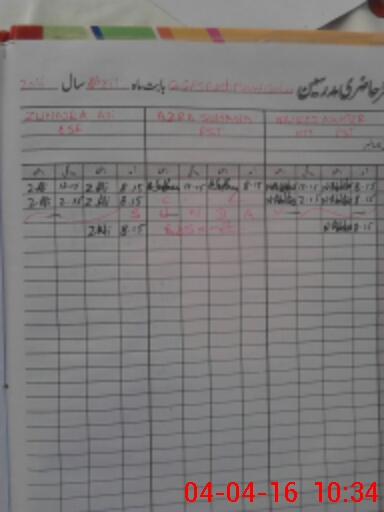 | CNIC | Full Name | Designation | R/C | Absence During Last Calender Month |