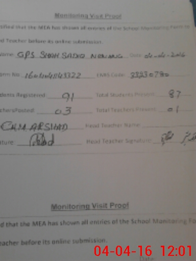 | EMIS Code: 33230780 | Name of School: GPS SHAH SADIQ NIHUNG | |||