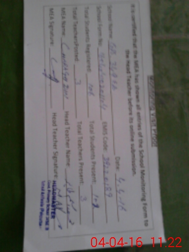 | Certified that this School was Inspected by the Undersigned MEA/DMO Today and the Information Stated Above is as Per Record. | |||||
