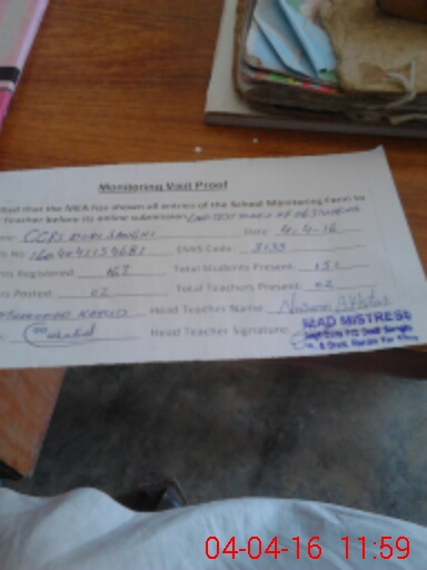 | Attendance Register | Head Teacher | MEA with School | Visit Proof |