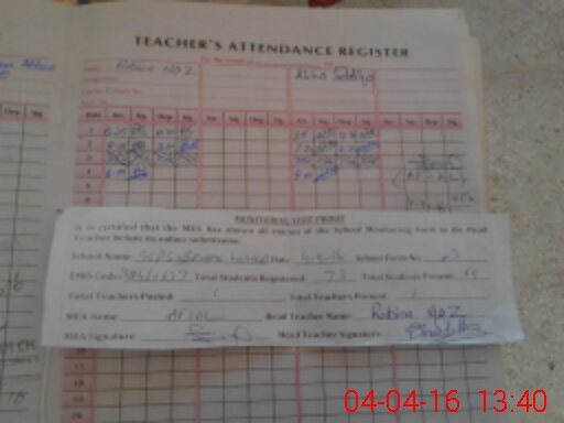 | Attendance Register | Head Teacher | MEA with School | Visit Proof |