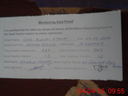 | EMIS Code: 31320049 | Name of School: GHS KACHI MANDI | |||