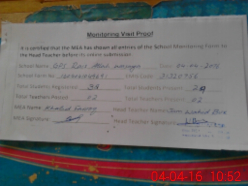 | EMIS Code: 31320756 | Name of School: GPS RAIS ALLAH VASAYA | |||
