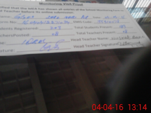 | Certified that this School was Inspected by the Undersigned MEA/DMO Today and the Information Stated Above is as Per Record. | |||||