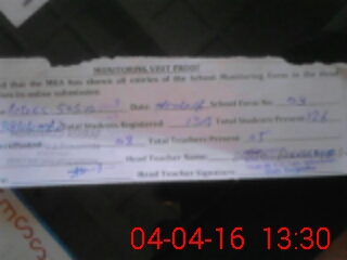 | Attendance Register | Head Teacher | MEA with School | Visit Proof |