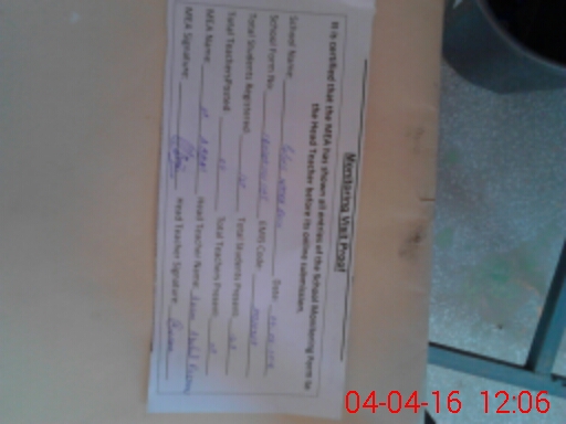 | Monitoring Date: 04-04-2016 | Start Time: 04-04-2016 11:41 AM | End Time: 04-04-2016 12:07 PM | Name of MEA: Mu**** Ab**** | |