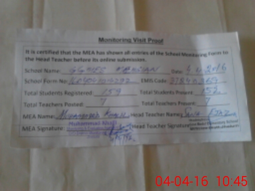 | Certified that this School was Inspected by the Undersigned MEA/DMO Today and the Information Stated Above is as Per Record. | |||||