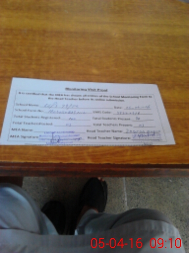 | Attendance Register | Head Teacher | MEA with School | Visit Proof |